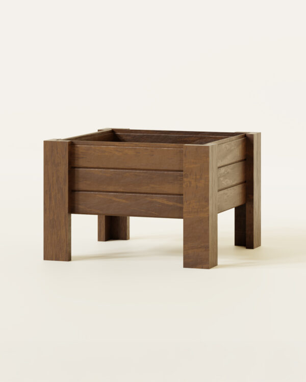 Dora Bold Slim – 53×53 cm Alçak Kare Ahşap Saksı (18 cm İç Derinlik, Ayaklı)