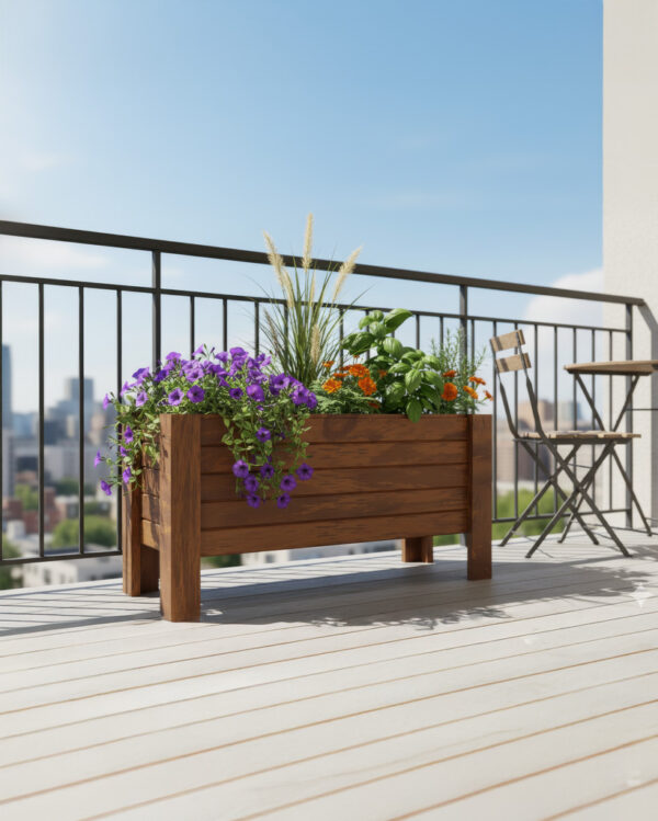 Dora Long Norm – 105×39 cm Standart Ahşap Saksı (32 cm İç Derinlik, Ayaklı)